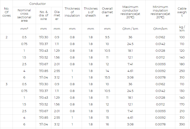 Outer sheath: Polyvinyl chloride(PVC/ST2)
