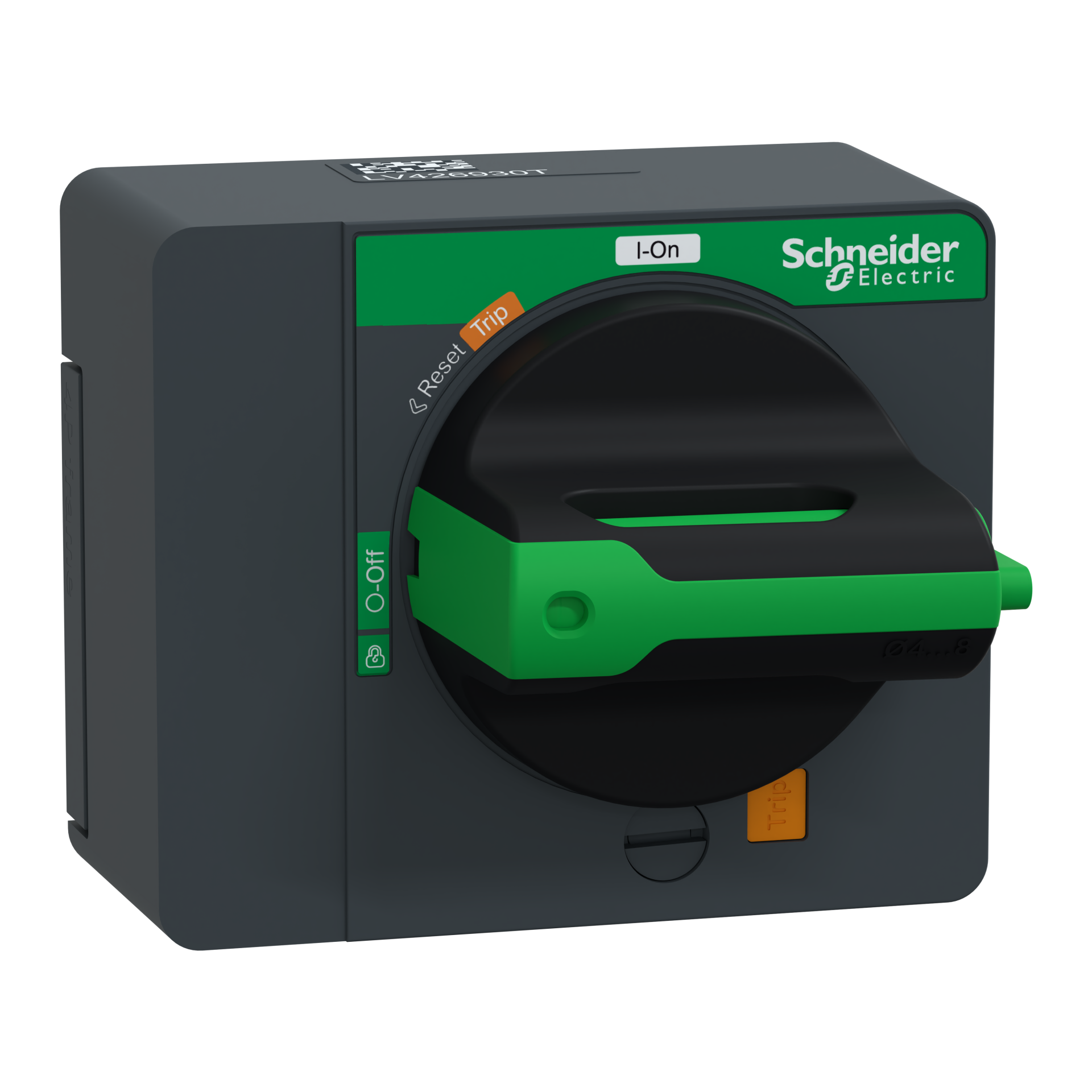 This direct rotary handle is a control accessory for ComPacT NSXm and PowerPact B devices. The circuit breaker installed in a switchboard with this direct rotary handle is IP 40 according to IEC 60529 standard. It can be mounted directly on the device front cover and it maintains suitability for isolation. This accessory has a black handle on a black front. It can be packlocked in the OFF position by using one to three padlocks.