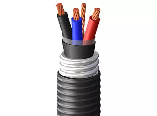 The cable consists of multiple conductors, typically made of copper or aluminum, which carry the electrical current.